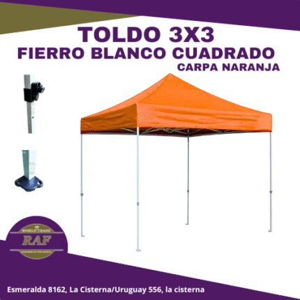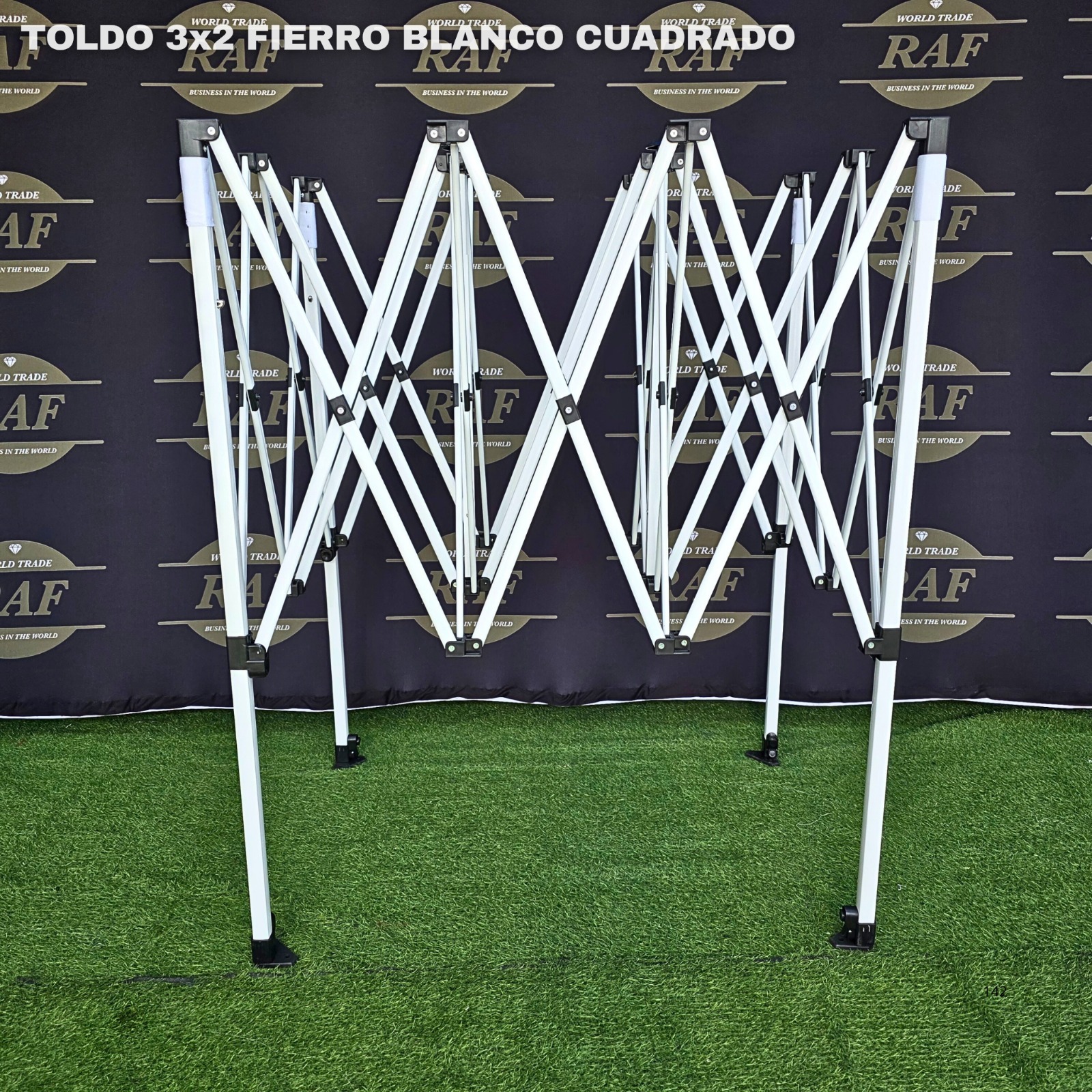Toldo 3×2 Acero Galvanizado, fierro Blanco Cuadrado con Filtro UV especialmente diseñado para soportar la humedad y la exposición prolongada al sol, sus pata telescópicas 40*40 0,6 espesor.