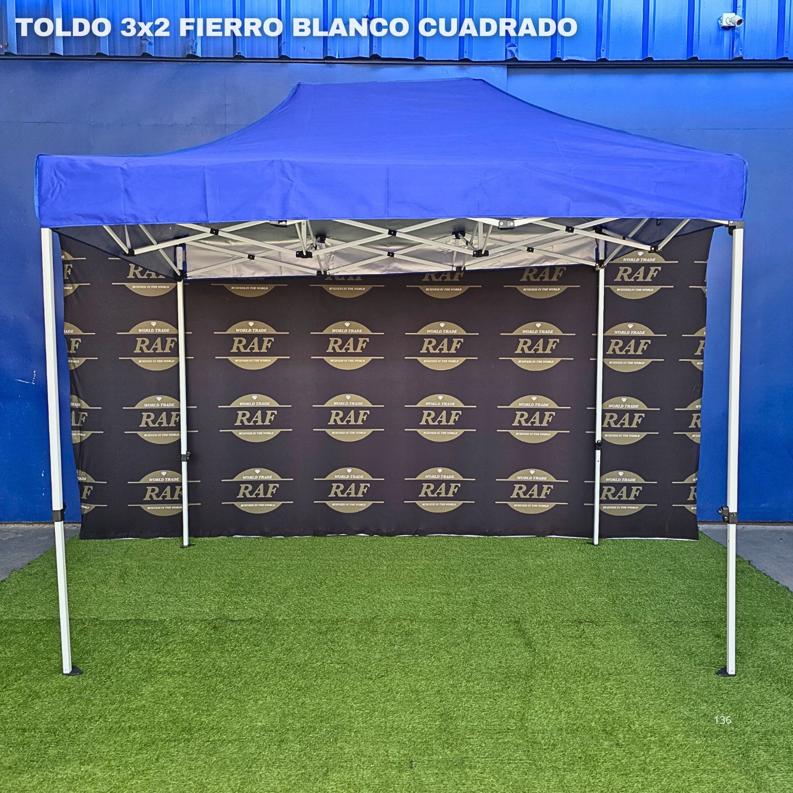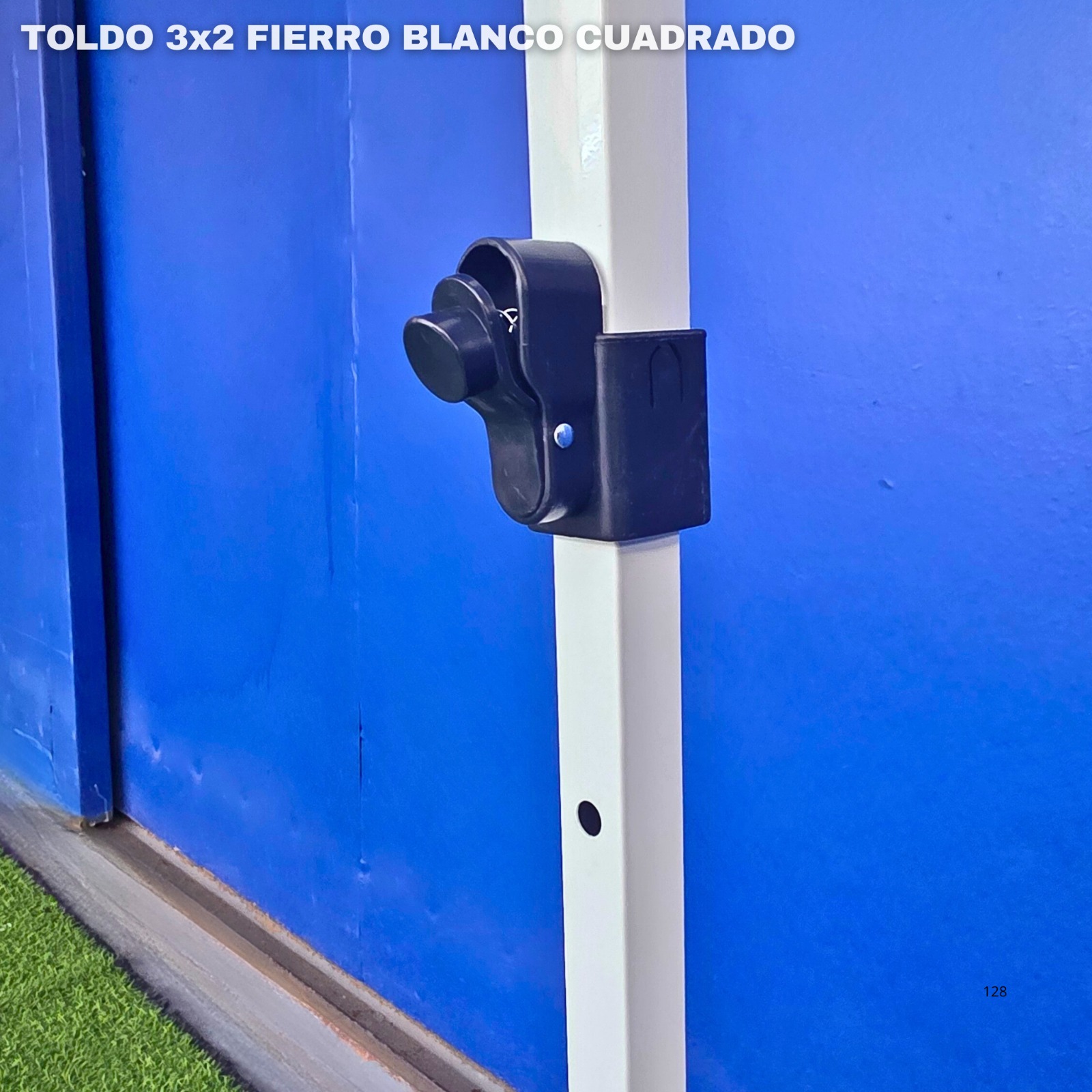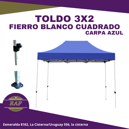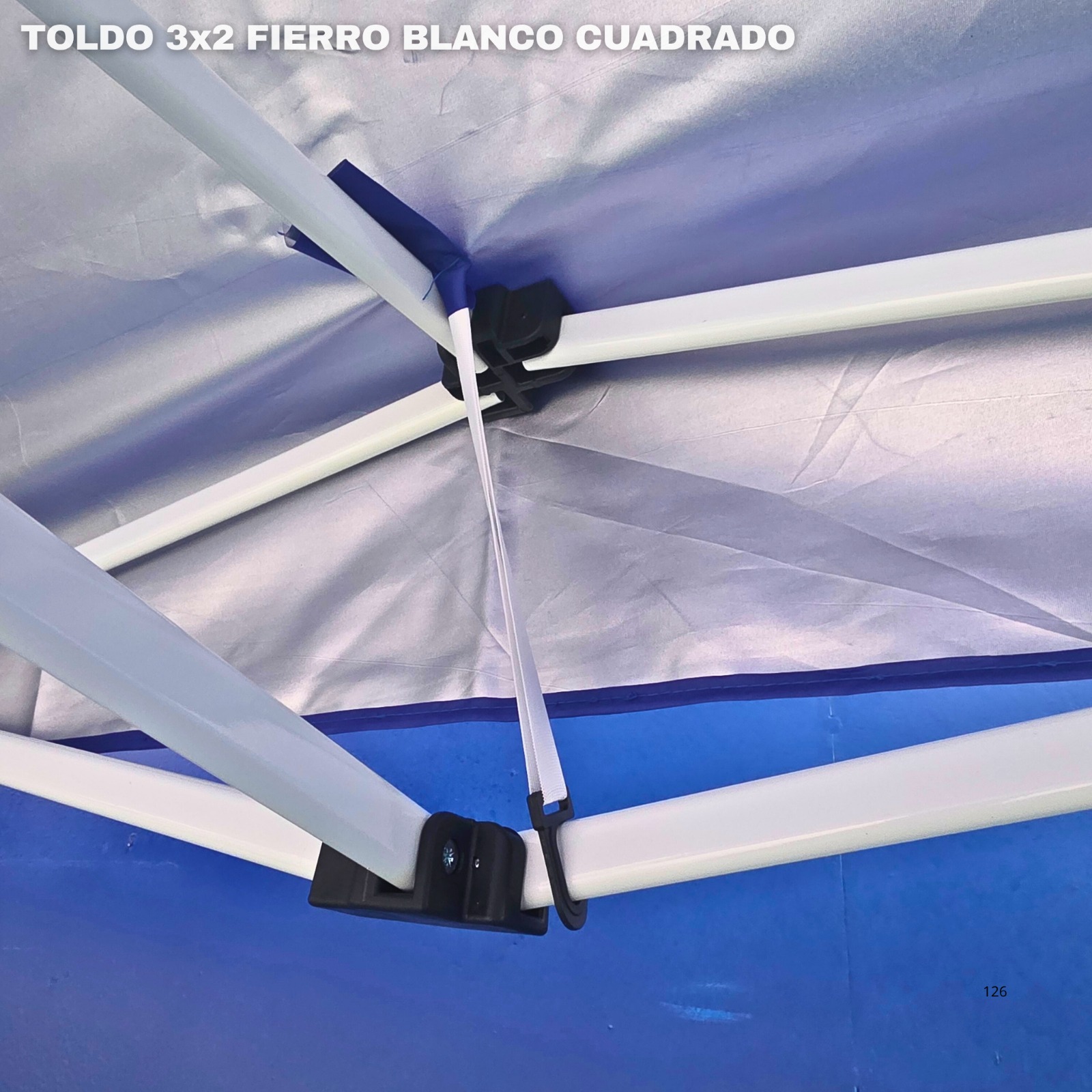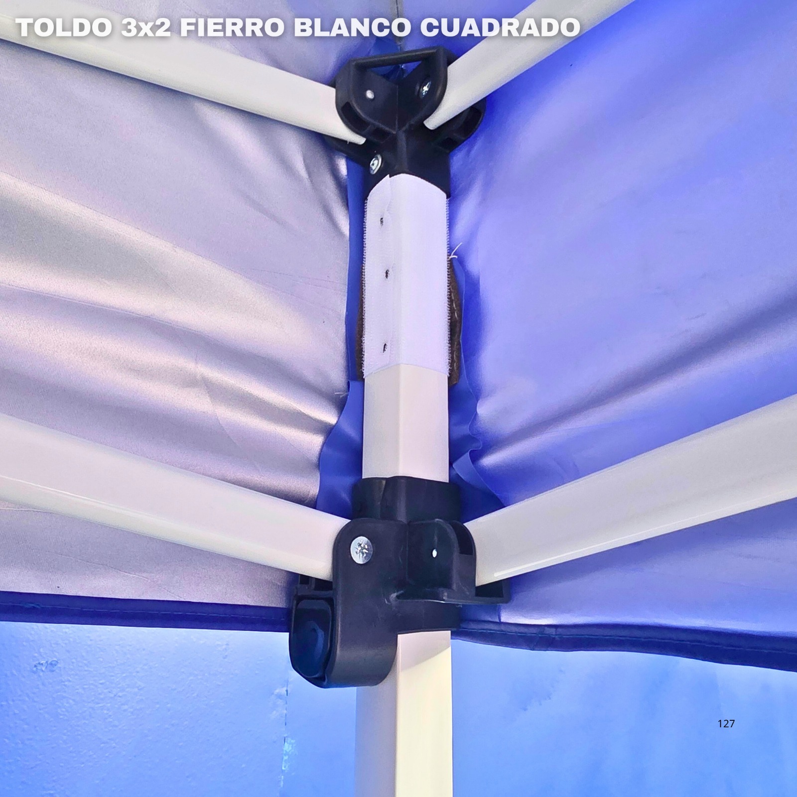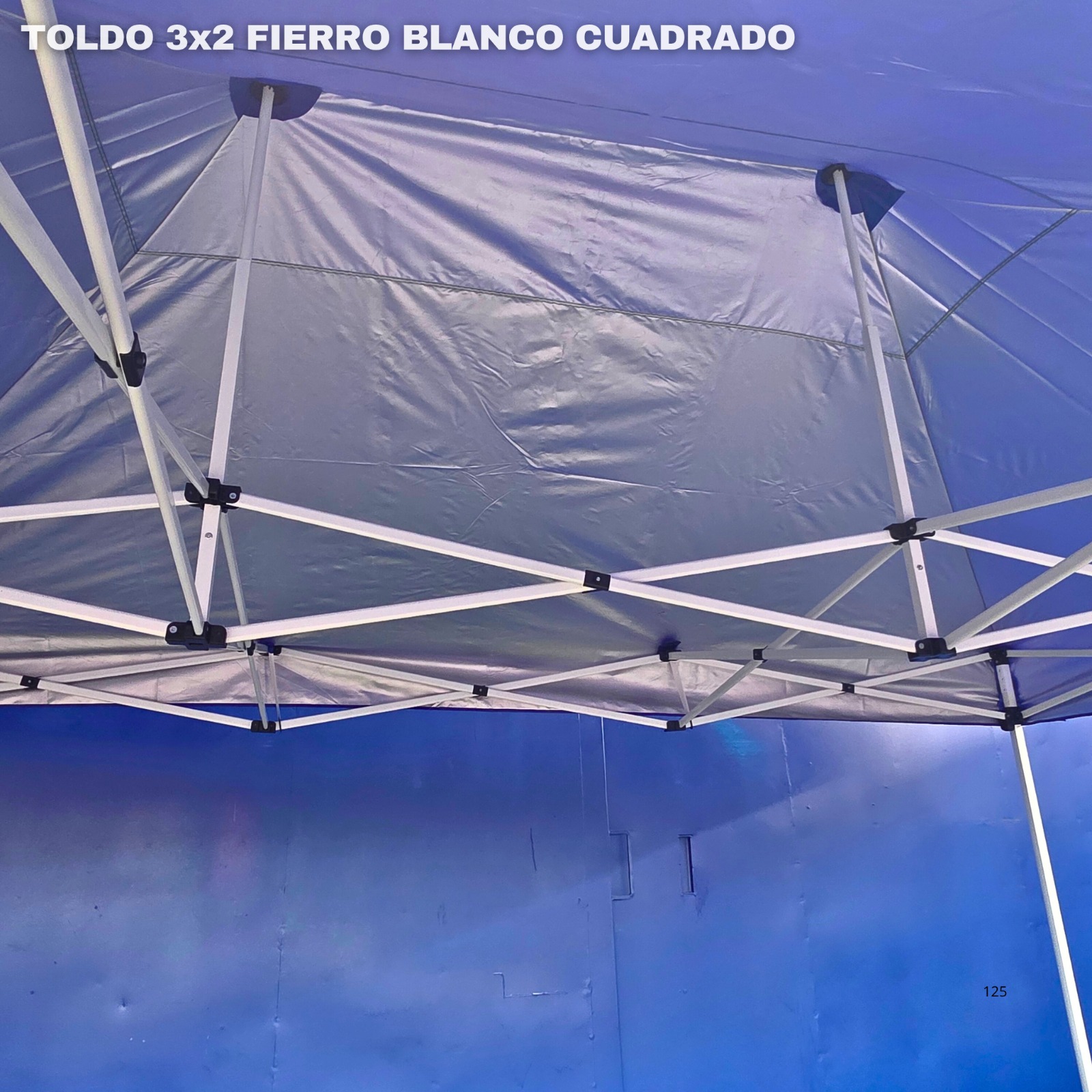 TOLDO 3X2 FIERRO BLANCO CUADRADO CARPA AZUL